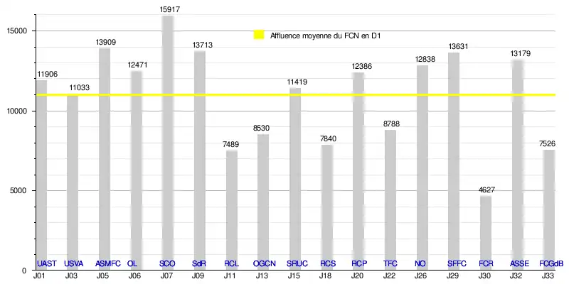 L'affluence à domicile du FC Nantes atteint un total de 187.202 spectateurs en 17 rencontres de Division 1, soit une moyenne 11.012/match.