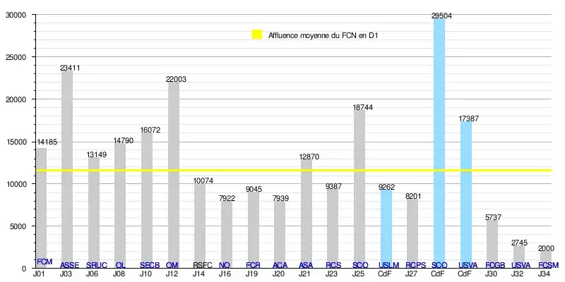 - de 198 274 spectateurs en 17 rencontres de Division 1, soit une moyenne de 11 663/match.