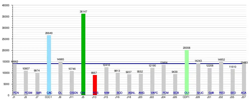 295 552 spectateurs ont assisté à une rencontre au stade cette saison, soit une moyenne de 14 074 par match. 21 rencontres ont eu lieu à Geoffroy-Guichard durant la saison.