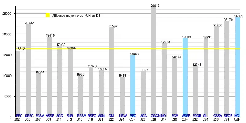 - de 312 886 spectateurs en 19 rencontres de Division 1, soit une moyenne de 16 468/match.