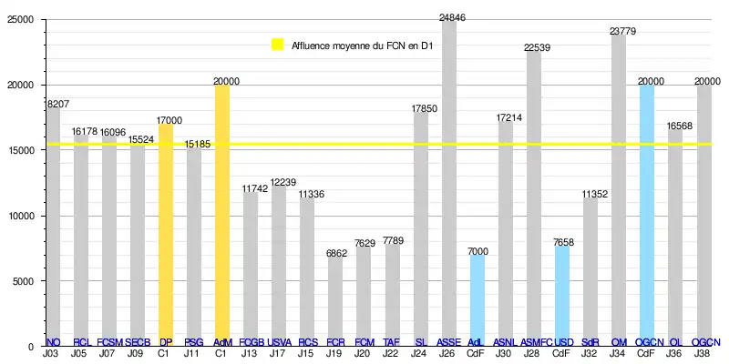 - de 292 935 spectateurs en 19 rencontres de Division 1, soit une moyenne de 15 418/match.