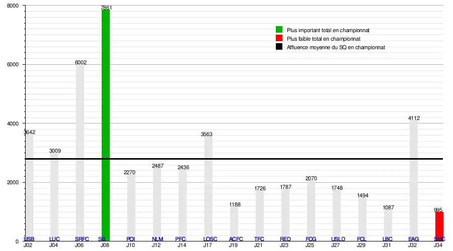 L'affluence à domicile du Stade Quimpérois atteint un total[12] :