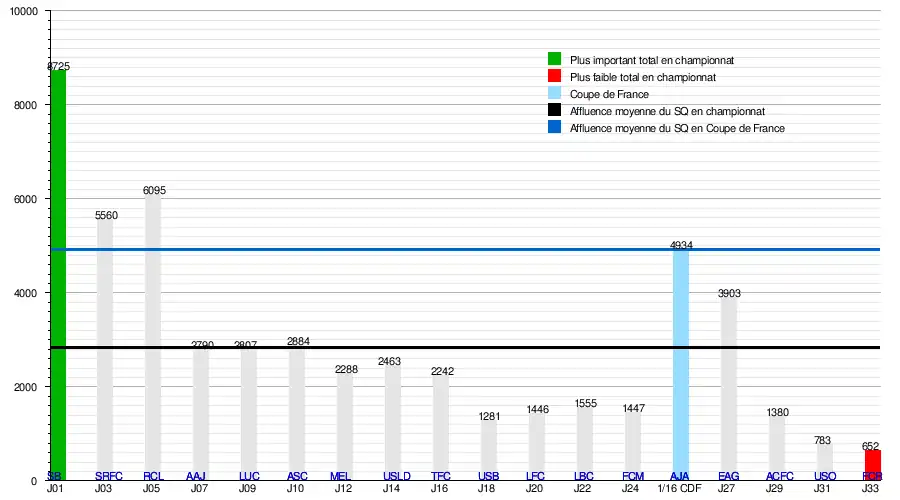 L'affluence à domicile du Stade Quimpérois atteint un total[16],[17] :