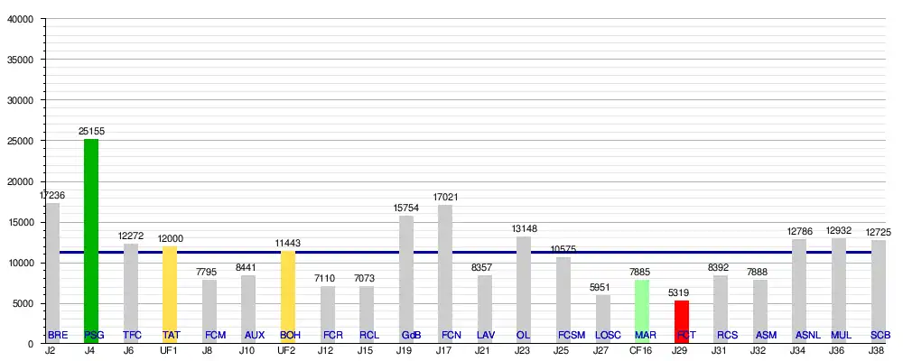 247 258 spectateurs ont assisté à une rencontre au stade cette saison, soit une moyenne de 11 239 par match.