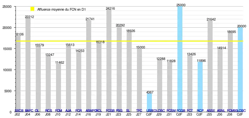 - de 319 758 spectateurs en 19 rencontres de Division 1, soit une moyenne de 16 829/match.