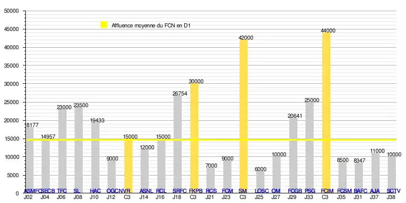 - de 277 309 spectateurs en 19 rencontres de Division 1, soit une moyenne de 14 595/match.