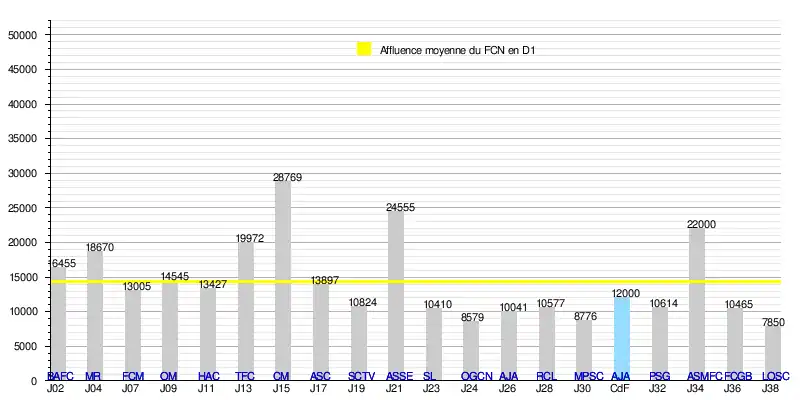 - de 285.431 spectateurs en 20 rencontres toutes compétitions confondues, soit une moyenne de 14.272/match.