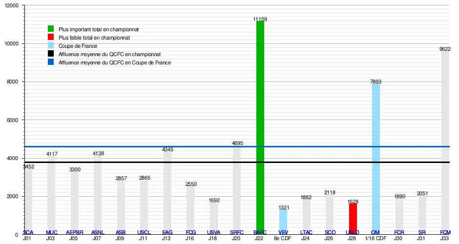 - de 64 341 spectateurs en 17 rencontres de Division 2, soit une moyenne de 3 785/match.