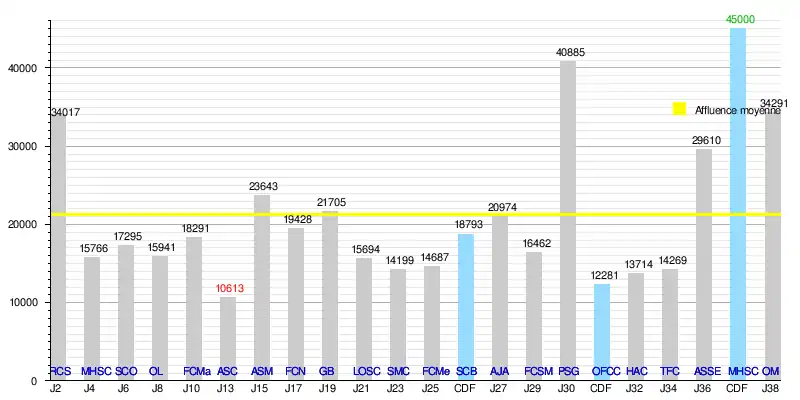 - 1 2 « Classements - 38e journée », sur lfp.fr (consulté le )