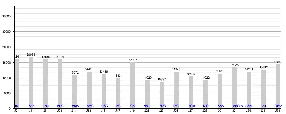 Une seule rencontre a dépassé les 20 000 spectateurs en championnat cette saison. Il s'agit de la rencontre contre Reims en début de saison. Mais une rencontre va dépasser la barre des 30 000. Il s'agit du quart de finale de Coupe de la Ligue contre l'Olympique de Marseille.
