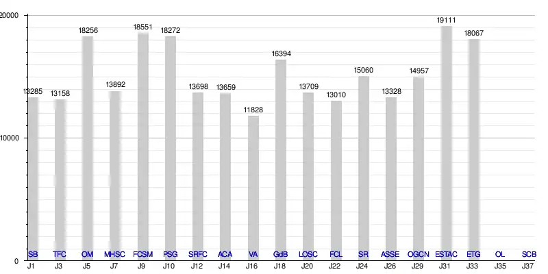 - ↑ « Affluences par club - L1 2012-2013 », sur LFP.fr (consulté le ).