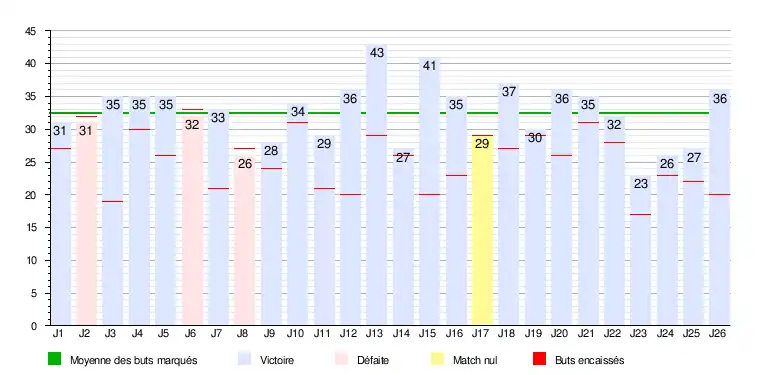 Les Parisiens ont inscrit 842 buts en 26 matchs de championnat (soit 32,4 buts/match) et ils ont encaissé 661 buts. Le club a la meilleure attaque et la deuxième défense de la saison.