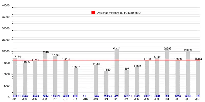 L'affluence à domicile du FC Metz atteint un total de 66.853 spectateurs en 4 rencontres de Ligue 1, soit une moyenne de 16.714/match.