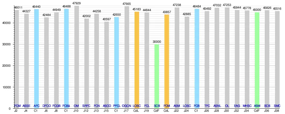 | Ligue 1 | - | Deuxième | 38 | 27 | 6 | 5 | 83 | 27 | +56 |