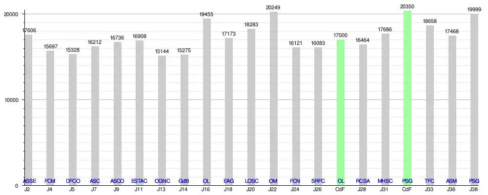 | Dimanche | 17h00 | 12 | Olympique de Marseille | Ext. | 18 | 7 | 47 687 | ||||