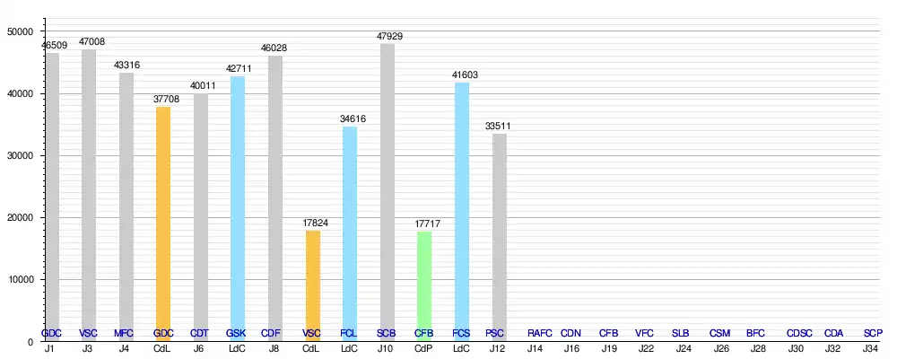 Deuxième 50 pts (16V, 2N, 2D) (41 buts pour, 11 buts contre) |