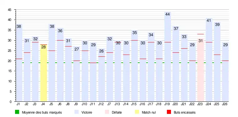 | Légende : | Victoire | Nul | Défaite | Score du club | Champion de France |