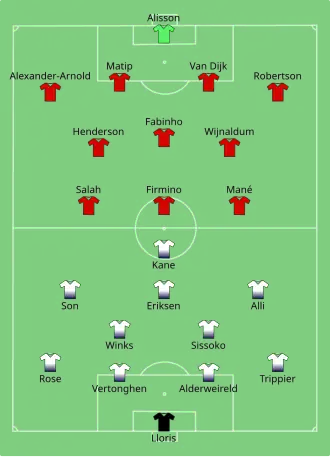 Pour le onze de départ, Mauricio Pochettino fait un choix surprenant : laisser Lucas Moura, héros de la demi-finale, sur le banc. Au bout de seulement 24 secondes de jeu, Damir Skomina désigne le point de penalty pour les Reds, un centre de Sadio Mané ayant été dévié par Moussa Sissoko. Cependant, les images révèlent que le milieu français a dévié le centre avec sa poitrine et non avec son bras. Il n'en est rien et Mohamed Salah ouvre le score sur penalty pour Liverpool (0-1). La première période est catastrophique pour Tottenham, qui est acculé par l'équipe adverse. A la 38e minute, seul dans le couloir gauche, Andrew Robertson décoche une puissante frappe que Hugo Lloris claque au dessus de la barre. La situation ne s'améliore guère au retour des vestiaires et James Milner, nouvel entrant, manque de marquer le deuxième but des Reds (68e). Dans les dix dernières minutes, Tottenham se réveille en fin mais Dele Alli (72e), Son (80e), Lucas (80e) et Eriksen (85e) butent tous sur Alisson Becker, le gardien de Liverpool. A la 87e minute, sur un corner mal renvoyé par la défense londonienne Tottenham, Divock Origi bat Lloris d'une frappe croisée au ras du sol et crucifie Tottenham (0-2). Les Spurs s'inclinent en finale et mettent fin à leur incroyable parcours dans la plus prestigieuse des compétitions[17].