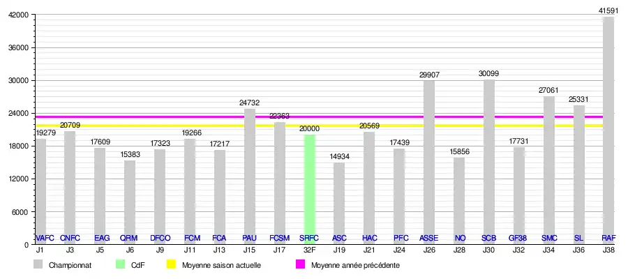 | 1 | Girondins de Bordeaux - RAF | Ligue 2 - 38e journée | 02/06/2023 | 41 591 |