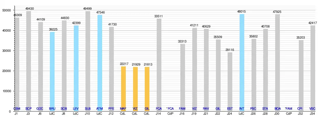 | 28 | Bruno Costa | 6 | 0 | 1 | 0 | 0 | 3 | 0 | 0 | 0 | 0 | 2 | 1 | 1 | 0 | 0 | 1 | 0 | 0 | 0 | 0 | 1 | 0 | 0 | 0 | 0 | 13 | 1 | 2 | 0 | 0 | |