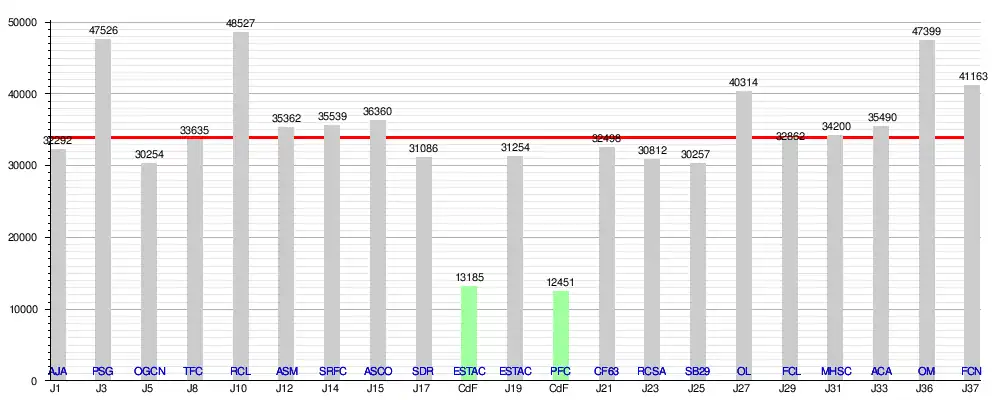 | Ligue 1 | - | - | 38 | 19 | 10 | 9 | 65 | 44 | +21 |