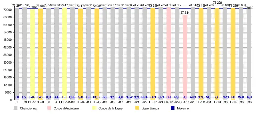 Ce graphique représente le nombre de spectateurs présents à Old Trafford lors de chaque match a domicile.