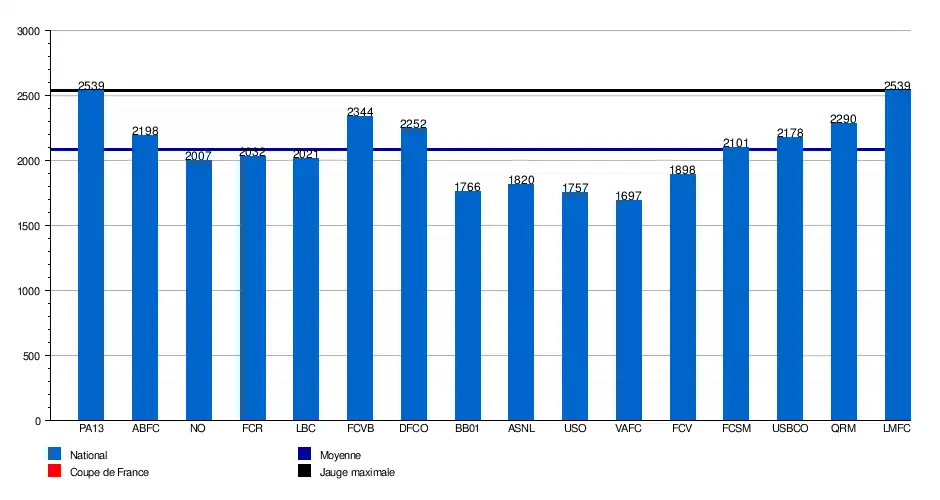 - Total de 33 439 spectateurs en 16 matchs à domicile soit une moyenne de 2 090 spectateurs par match.