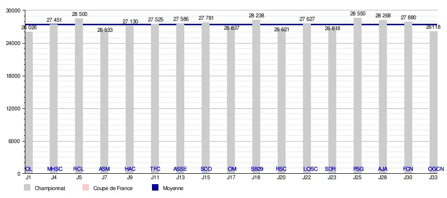 | 12 | sam. | 21 septembre | 19 h 00 | Ligue 1 | 5 | Lens | D | 1 - 1 | 8e | 28 500 |