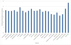 - 1 2 3 4 5 6 7 8 9 10 11 12 13 14 15 16 17 18 19 20 21 22 23 (en) « The Office Nielsen Ratings, Season 9 », sur OfficeTally, (consulté le ).