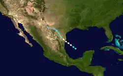 Au début d'octobre ou à la toute fin de septembre, une dépression tropicale s'est formée dans le Golfe du Mexique. Elle toucha terre près de la frontière entre les États-Unis et le Mexique le 3 octobre. Devenue un système extratropical, elle se dirigea vers l'intérieur de terres et tourna ensuite vers le nord avant d'entrer au Nouveau-Mexique et de se dissiper le 7 octobre. Ce système causa des inondations soudaines dans le bassin de la rivière Pecos, avec un maximum de 250 mm de pluie près de Canton (Nouveau-Mexique) [3]
