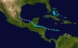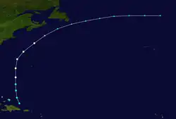 Le 16 novembre, une dépression tropicale se développa au nord-est des Petites Antilles. Elle se déplaça vers l'ouest, atteignant une maximum de vents de 80 km/h avant de se dissiper le 21 novembre.