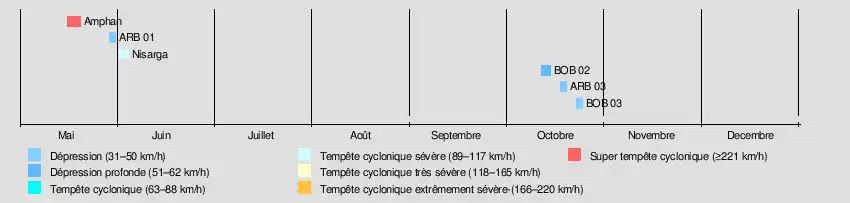 | Le plus intense | Amphan (240 km/h sur 3 minutes) (au 21 mai) | ||||||||||||||||||||