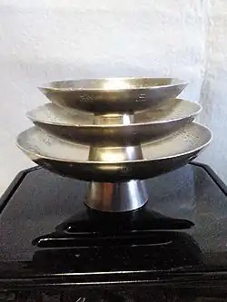 Il mesure en moyenne 7 à 8 cm de large sur 3 à 8 cm de haut ; il est parfois muni d'un petit pied.