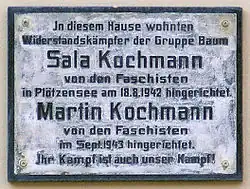 Aujourd'hui une plaque commémorative sur la maison de la Gipsstraße 3 à Berlin-Mitte commémore Kochmann et son mari. Une plaque commémorative au cimetière juif de Berlin-Weißensee commémore les 27 membres du groupe exécutés (ou tués) en 1942 et 1943 pour leur résistance.