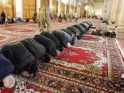 La prière est une obligation pour le musulman et appartient aux piliers de l'islam[4]. Elle est considérée comme le "cœur de l'islam". La récitation du Coran est une partie importante de chaque prière. "La prière musulmane doit son importance exceptionnelle au lien constant qu'il établit entre l'individu fidèle et les trois réalités suprêmes de son univers religieux: la Communauté, le Prophète et Dieu"[4]. Dans le monde musulman, cette obligation a parfois été nuancée[note 5]. Les prédications et les nouveaux médias ont participé à la création d'une plus grande standardisation[30].