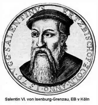 - ↑ (de) « Salentin IX, Graf von Isenburg-Grenzau, Kurfürst von Köln, * 1532 | Geneall.net », sur geneall.net (consulté le )