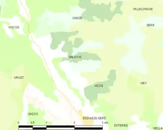 - ↑ « Carte hydrographique de Saligos » sur Géoportail (consulté le 4 novembre 2021).