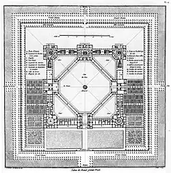 - ↑ Daniel Rabreau, L'architecture du roi et les monuments du progrès, dans « Claude-Nicolas Ledoux », Éditions du patrimoine, Paris, 2005, (ISBN 2858228469)