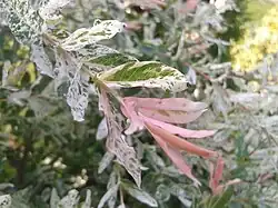 - Salix integra 'Hakuro Nishiki', le saule crevette ou saule arlequin. Le manque de chlorophylle sur les jeunes pousses rend les feuilles blanches avec des nuances de rose, évoquant les couleurs de la crevette[2].