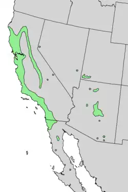 De petites populations sont citées en Oregon, dans le Nevada, et au Nouveau-Mexique. En Arizona, il peut être rencontré dans la zone de transition du Rim de Mogollon et au centre du Grand Canyon. Sa distribution s'étend vers le Virgin River canyon, du sud-ouest de l'Utah[2].