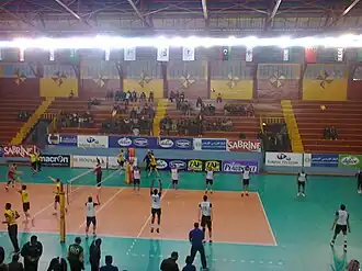 Vue de la salle lors du match EST-Baniyas SC dans le cadre de la Championnat arabe des clubs champions masculin de volley-ball 2014.