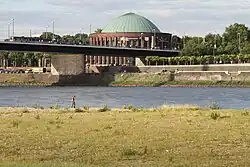 Le bâtiment actuel est construit en 1925/1926 comme salle polyvalente pour l'exposition GeSoLei sous le nom de salle rhénane[3] et est initialement conçu pour être utilisé comme planétarium[4]. C'est ce qu'indiquent encore aujourd'hui l'étoile dorée au sommet de la coupole ainsi que les paires de sculptures sur l'escalier extérieur menant à la cour d'honneur, qui symbolisent les planètes Mars et Jupiter ainsi que Vénus et Saturne, ainsi que la statue de Pallas Athéna créé par Johannes Knubel en tant que protecteur de la science et de l'art, à l'entrée du pont d'Oberkassel. Neuf des onze peintures d'allège créées en 1926 sont accrochées dans le grand hall circulaire à l'intérieur de la rotonde, la galerie extérieure du foyer, à partir de l'entrée principale dans le sens des aiguilles d'une montre : Jankel Adler, Bernhard Gobiet, Arthur Kaufmann, Adolf Uzarski, Heinz May, Ferdinand Carl Cürten (de), Fritz Burmann (de), Josef Bell (1891-1935) et Werner Heuser[5].