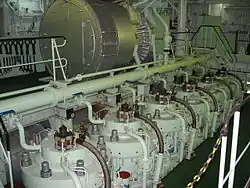 Sur un navire, on appelle salle des machines les compartiments qui renferment l'appareil propulsif (turbines ou moteurs Diesel) et évaporateur (chaudières) ainsi que les divers appareils auxiliaires, tels que les groupes électrogènes, produisant l'énergie nécessaire au fonctionnement du navire.