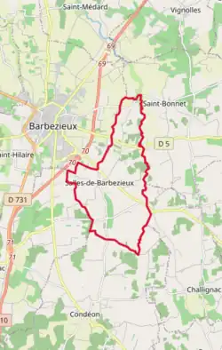 - ↑ « Liste des communes composant l'aire d'attraction de Barbezieux-Saint-Hilaire », sur insee.fr (consulté le ).