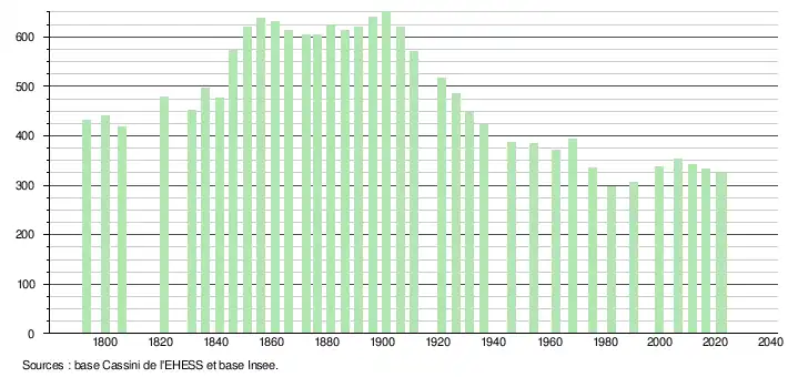 - ↑ Fiches Insee - Populations de référence de la commune pour les années 2006, 2007, 2008, 2009, 2010, 2011, 2012, 2013, 2014, 2015, 2016, 2017, 2018, 2019, 2020, 2021 et 2022.