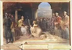 - ↑ Cette œuvre fut commandée à Eugène Roger le , pour la somme de 1 500 francs. Le peintre décéda le et le tableau ne fut jamais livré[réf. nécessaire], mais fut cité dans les listes par Gavard[G 14] puis Soulié[S 23].