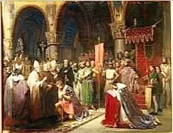 - Louis IX (saint Louis), roi de France. Par M. Émile Signol en 1844. — H. 2,98. — L. 2,32.