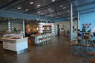 Les autres équipements comprennent généralement des écrans donnant des informations sur les vols, des téléviseurs, des journaux et des magazines[1], en plus de centres d'affaires avec bureaux, points d'accès à internet, téléphones[1], photocopieurs et services de fax.[citation nécessaire] L'accès Internet sans fil gratuit pour les clients est également courant[2],[14].