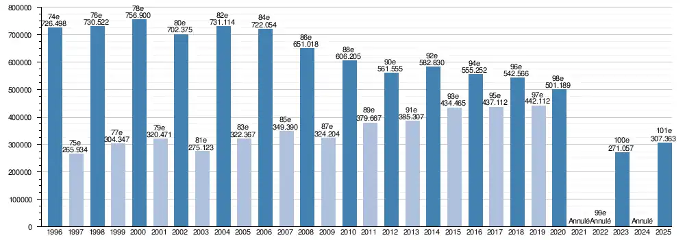 En 2000, le salon atteint son record de fréquentation avec 756 900 visiteurs[1],[2],[3],[4],[5],[6],[7],[8],[9],[10],[11],[12],[13],[14]