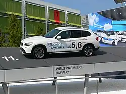 En partie dévoilée par un concept éponyme du modèle de série lors du Mondial de l'automobile de Paris - Édition 2008, la BMW X1 entame une nouvelle interprétation des Sport Utility Vehicle, plus connue par l'abréviation SUV. D'une taille plus petite que les modèles X3, X5 et X6, le X1 tente de concilier les atouts qui ont fait le succès des SUV depuis les années 2000 aux préoccupations actuelles en termes de respect de l'environnement[9]. Cette volonté n'est pas dénuée de sens étant donné que les gros 4x4 connaissent des difficultés sur leur principal marché, les États-Unis, alors que les SUV attire toujours[10].